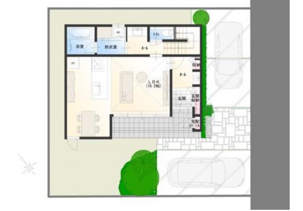 - オール電化、ルーフバルコニー、システムキッチン、IHクッキングヒーター、食器洗浄乾燥機、シャンプードレッサー、浴室乾燥機、モニタ付インターホン、ウォークインクローゼット、複層ガラス、駐車場2台分、床下収納