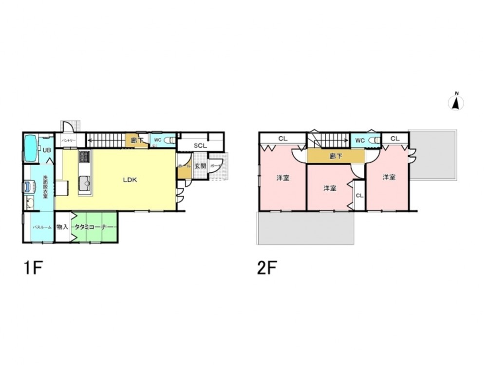 - システムキッチン、IHクッキングヒーター、シャンプードレッサー、浴室乾燥機、モニタ付インターホン、洗浄便座、複層ガラス、駐車場2台分、床下収納、トイレ2箇所